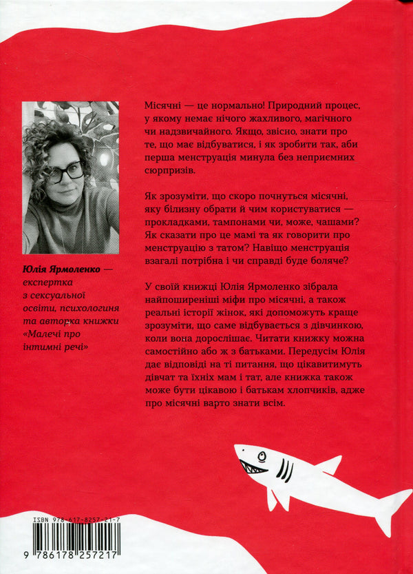 У своїй книжці Юлія Ярмоленко зібрала найпоширеніші міфи про місячні, а також реальні історії жінок, які допоможуть краще зрозуміти, що саме відбувається з дівчинкою, коли вона дорослішає.