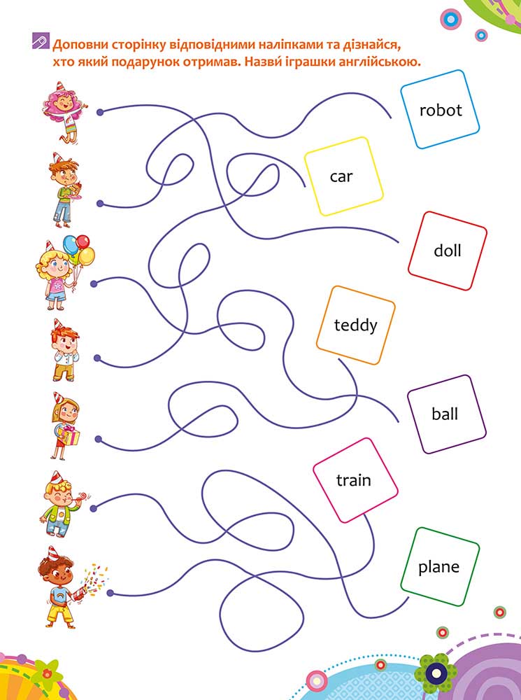 Використання наліпок під час виконання завдань допоможе розвунути увагу, пам’ять, мислення, сприятиме розвитку дрібної моторики.