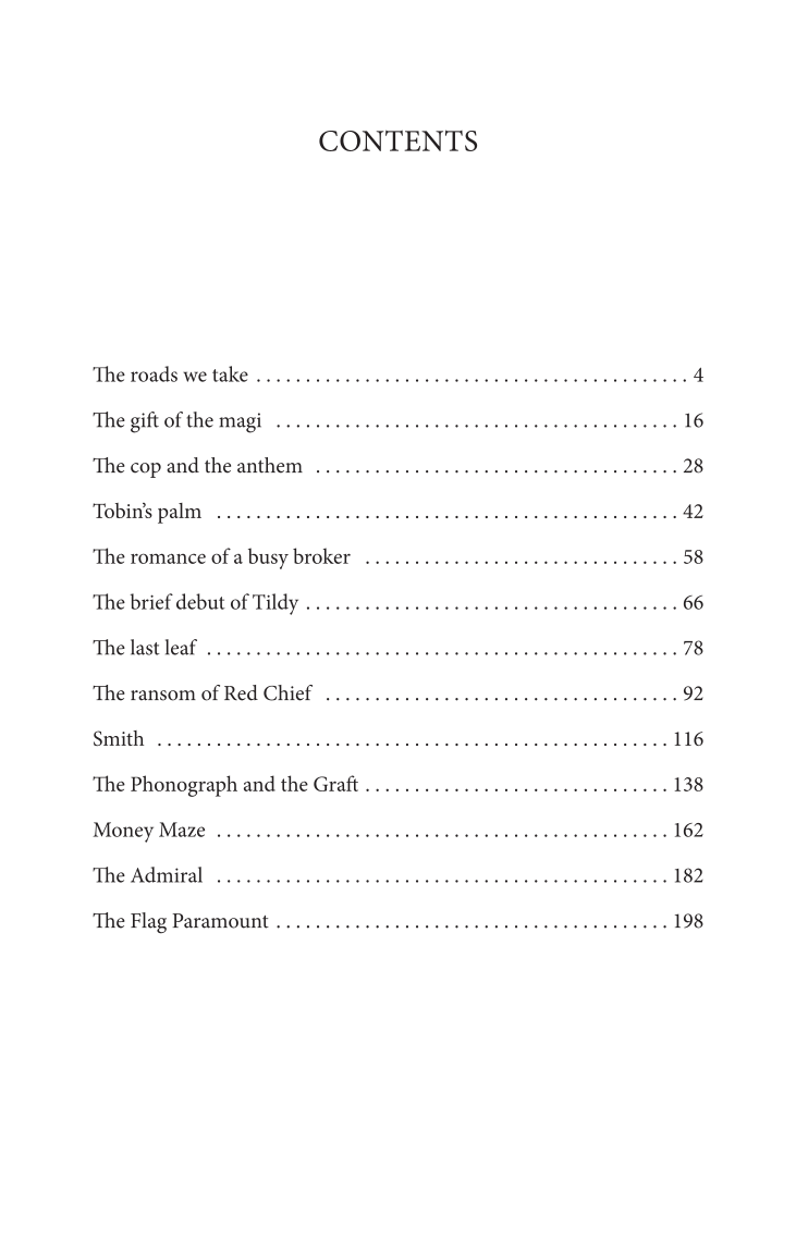 «Важливі не дороги, які ми обираємо, важливе те, що у нас в душі», — написав О. Генрі (1862—1910) в одному зі своїх оповідань. Його твори — це історії клерків, продавчинь, бродяг, невідомих художників, дрібних авантюристів, фермерів, їхні долі, помилки, щастя, сльози. Лаконічність викладу, тонкий гумор, незвичайність сюжету і завжди непередбачувана розв’язка уже більше ста років привертають увагу читачів до малої прози О. Генрі, великого письменника «маленьких людей».